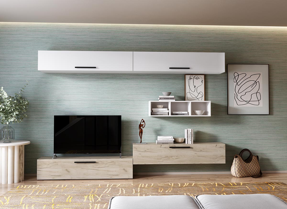Living Pati 104 – Mobila Sufragerie Stejar + Alb Living Pati 104 – Mobila Sufragerie Stejar + Alb face parte dintr-o categorie de mobilier modern, contemporan ce imbina designul cu utilitatea. Familia de living Pati are 4 decoruri: stejar, alb, gri si beton . Am realizat peste 100 de configuratii din care puteti alege cu dimensiuni si stiluri diferite. Dulapul de haine este optional si puteti alege unul sau mai multe bucati. Livrare gratuita si rapida, 4-10 zile lucratoare prin flota proprie Suntem producatori de mobilier, fara intermediari Toate piesele de mobilier au o garantie de 2 ani Corpurile sunt construite din PAL melaminat de 16mm. Cantul aplicat este de 0,6 ce le permite muchiilor sa fie placute la atingere . Dimensiuni Living Pati 104 – Mobila Sufragerie Stejar + Alb Imaginea alaturata prezinta compartimentarea pentru mobila de sufragerie Pati. Aceasta configuratie contine urmatoarele corpuri: 4 x Corp 1380: L 138 x H 29 x A 26.7 cm 1 x Corp decorativ: L 91.5 x H 23.2 x A 25 cm Optional dulap: L 79.8 x H 185 x A 35 cm Dimensiuni totale living Pati Fara dulap: L 276 x A 26.7 x H 185 cm Cu un dulap: L 355.8 x A 35 x H 185 cm Spatiul de TV: diagonala maxima 139 cm. Toate corpurile se pot pune pe stanga sau pe dreapta in functie de cum doriti. Nu este obligatoriu pozitionarea ca in prezentare. Ele nu sunt prinse unul de celalalt, sunt independente. SCHITA MONTAJ corp 1380 comoda / inferior SCHITA MONTAJ CORP 1380 SUPERIOR SCHITA MONTAJ CORP DECORATIV SCHITA MONTAJ dulap 2U Pati Pretul afisat nu include alte accesorii sau obiecte de decor (TV, tablouri, elemente de iluminat, covor etc.) Dimensiunile sunt exprimate in cm si pot oscila intre ± 10 mm. Produsul se livreaza demontat si este insotit de accesorii si instructiuni de asamblare.
