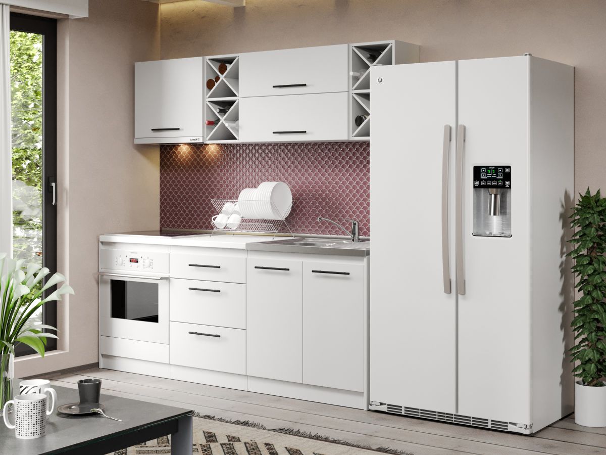 Mobila Bucatarie Alba C09 Pearl 200 cm