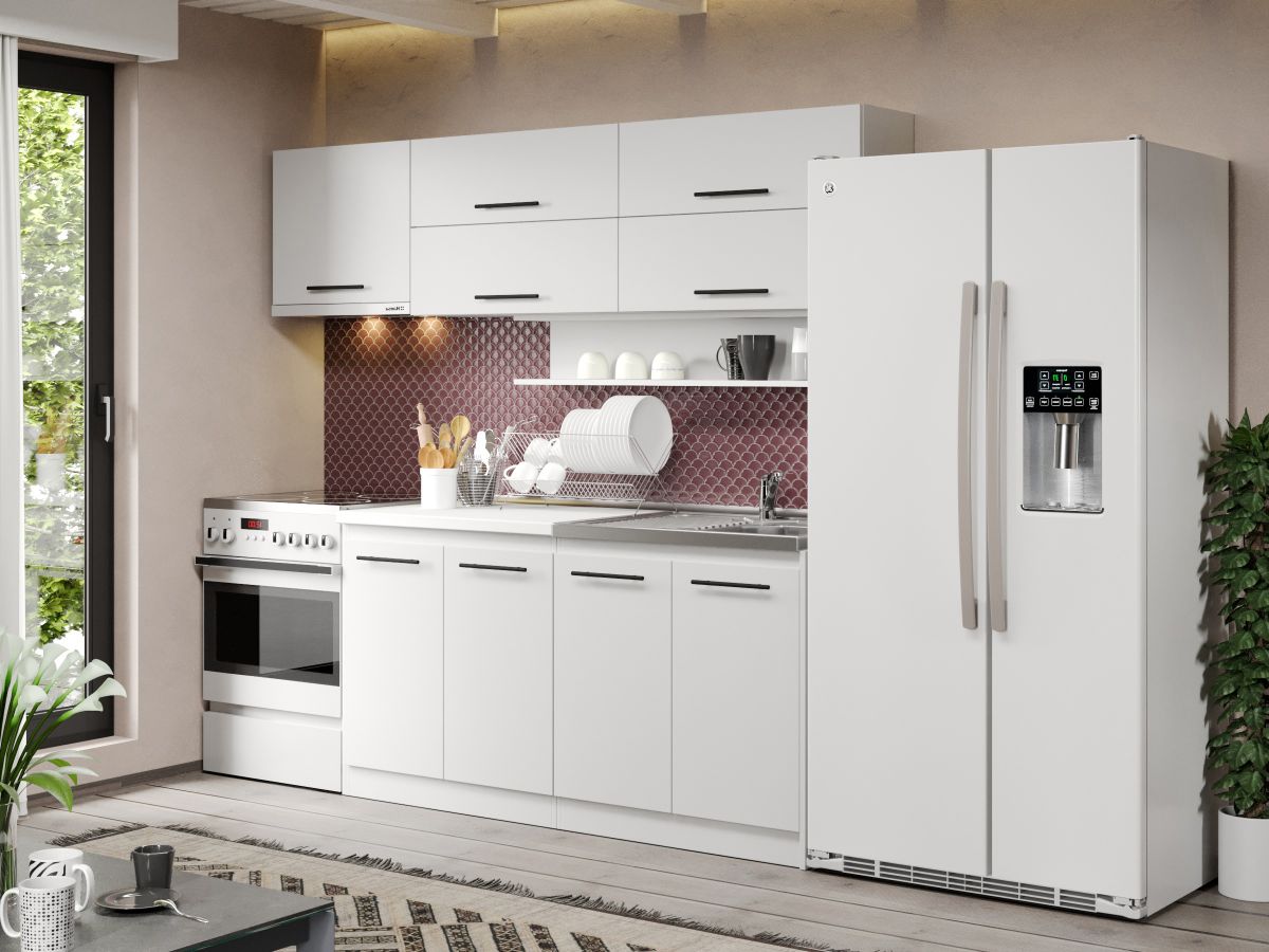 Mobila Bucatarie Alba C14 Pearl 220 cm