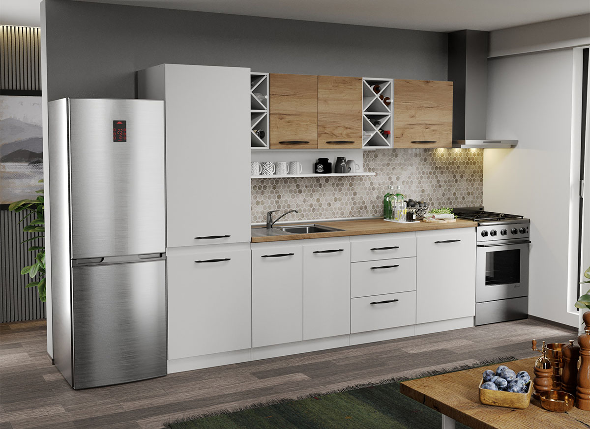 Mobila Bucatarie alba cu lemn Aroma – 13 – 260 cm