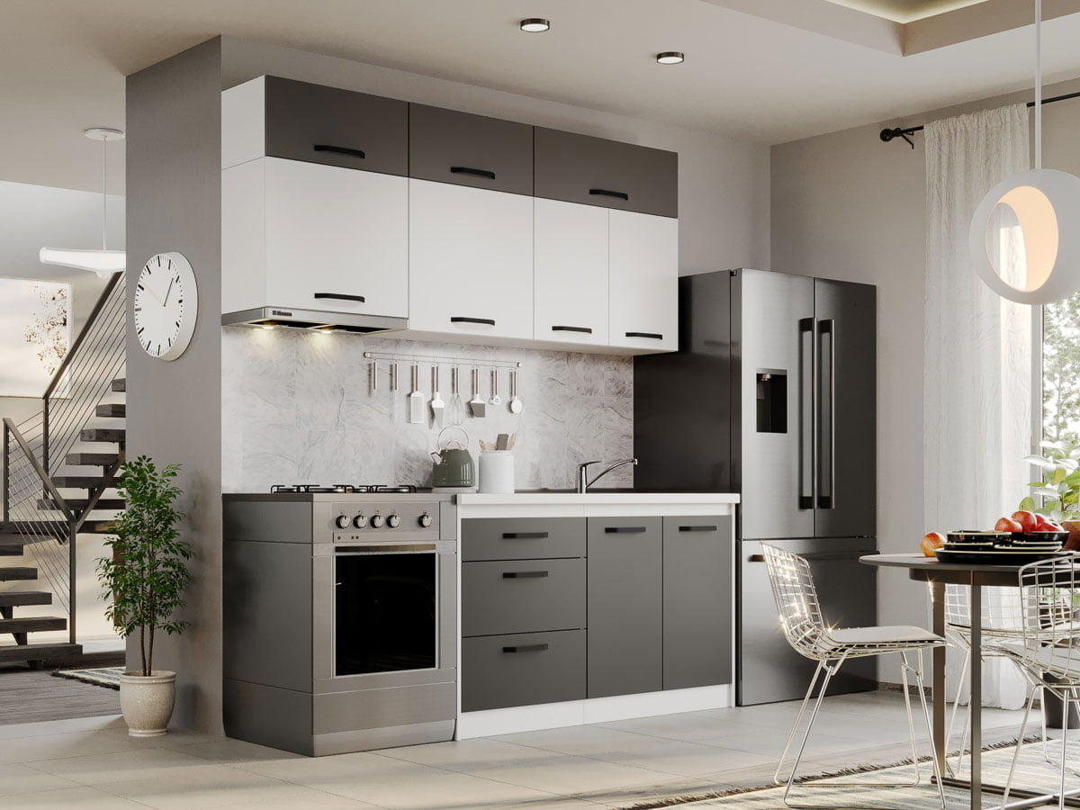 Mobila Bucatarie Fog Alb+Gri – 48 – 200 cm