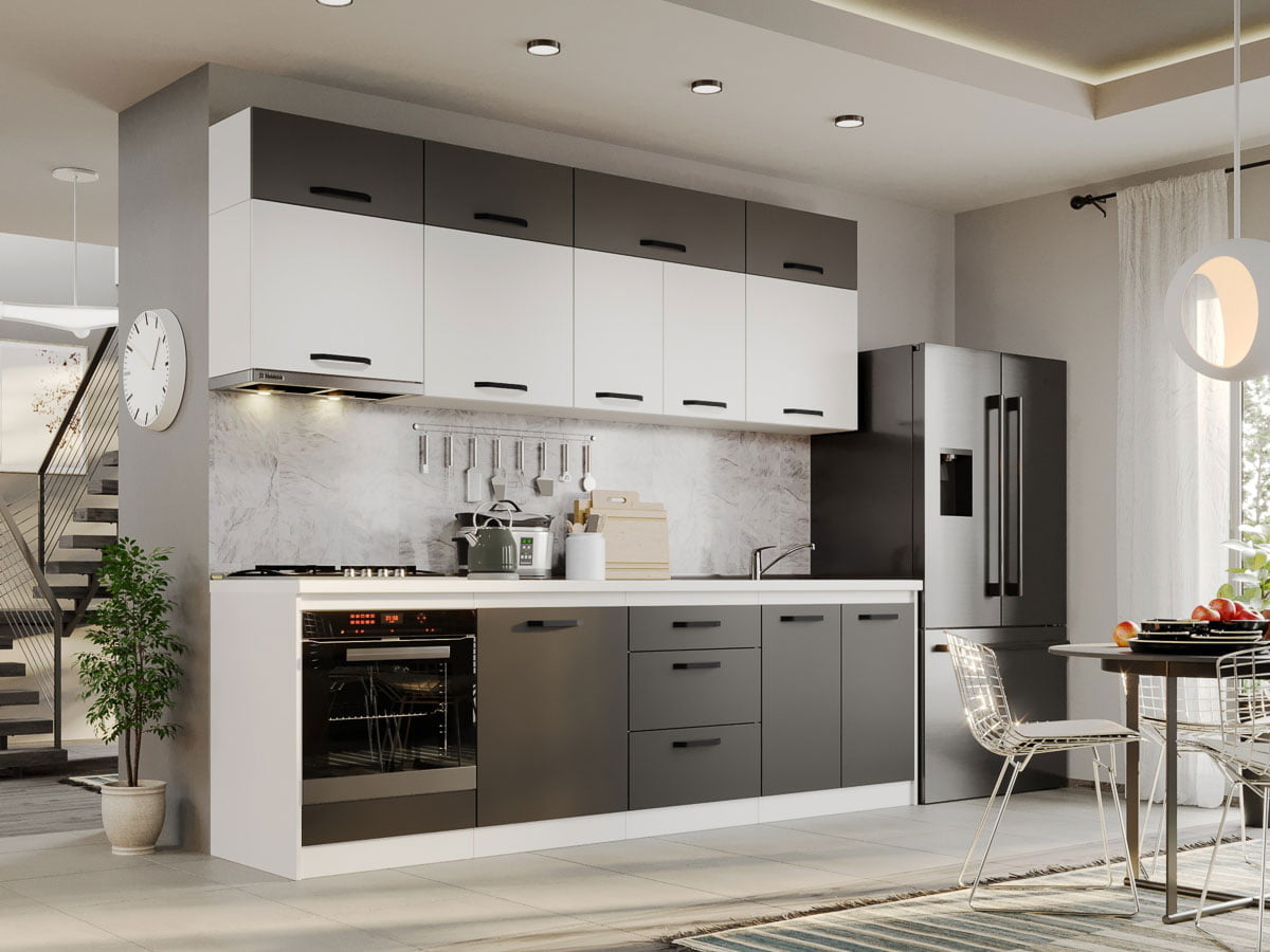 Mobila Bucatarie Fog Alb+Gri – 53 – 260 cm