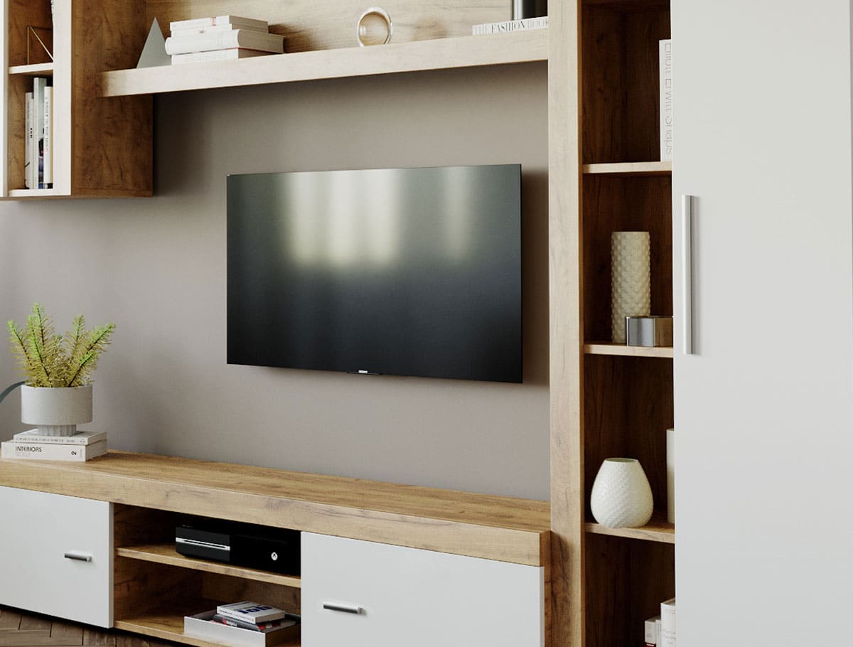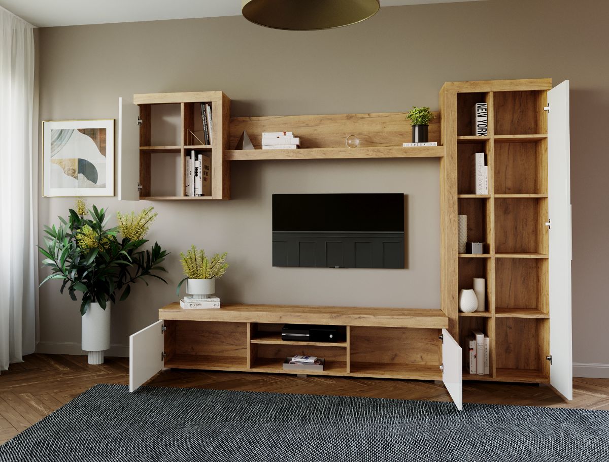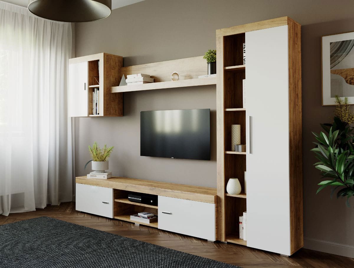 Living Milan Modul A Comoda Lunga Living Milan – Modul F / G Polita Living Milan Modul C Soldat 1 usa Living Milan Modul E Corp Suspendat Mobila sufragerie – Living Milan C1 Stejar Mobila sufragerie – Living Milan C1 Stejar face parte din familia de mobila pentru living Milan. Aceasta familie are un aspect modern si este compusa din mai multe module. Fara surprize la livrare, diferente de culoare sau calitate Livrare gratuita si rapida, 4-10 zile lucratoare prin flota proprie Suntem producatori de mobilier, fara intermediari Toate piesele de mobilier au o garantie de 2 ani Puteti alege direct din configuratiile realizate de noi sau daca doriti puteti creea singuri propria configuratie de living combinand din cele 8 corpuri de mobila. In functie de spatiul unde doriti sa amplasati mobila puteti adapta livingul pentru o potrivire perfecta. Corpurile sunt construite din PAL Kronospan melaminat de 16mm cu finisaj Stejar Auriu si Alb Mat, o textura similara lemnului, care creeaza un contrast rafinat si un ambient placut. Cantul aplicat este unul de 0,6 care le permite muchiilor sa fie pl?cute la atingere fiind finisate si atent retusate. Dimensiuni Mobila sufragerie – Living Milan C1 Stejar Imaginea alaturata prezinta compartimentarea interioara si exterioara pentru mobila de sufragerie Milan. Aceasta configuratie are 4 corpuri modulare , 2 suspendate si doua pe sol. Spatii de depozitare cu usa cat si etajere si polita. Dimensiuni corpuri: Comoda TV: L 180 x A 35.2 x H 39.8cm Soldat 1 usa: L 60 x A 30.4 x H 182cm Corp Suspendat: L 60 x A 30.4 x H 69.8cm Polita 1390 : L 139 x A 21.6 x H 34.8cm Dimensiuni totale livin L 259 x A 35.2 x H 182 cm Spatiul de TV: diagonala max 150cm/59″ (sau mai mare) Recomandam un TV cu o diagonala de maxim 150cm/59″. Se pot pune si TV-uri cu diagonala mai mare mutand corpul suspendat mai in stanga livingului sau mai sus. Dulapurile si toate corpurile se pot pune pe stanga sau pe dreapta in functie de cum doriti. Nu este obligatoriu pozitionarea ca in prezentare. Ele nu sunt prinse fix unul de celalalt. Info si schite montaj mobila sufragerie Schite de montaj: DESCARCA SCHITA MONTAJ COMODA LUNGA MILAN DESCARCA SCHITA MONTAJ CORP INALT MILAN DESCARCA SCHITA MONTAJ CORP SUSPENDAT MILAN DESCARCA SCHITA MONTAJ POLITA MILAN Pretul afisat nu include alte accesorii sau obiecte de decor (TV, tablouri, elemente de iluminat, covor etc.) Dimensiunile sunt exprimate in cm si pot oscila intre ± 10 mm. Produsul se livreaza demontat si este insotit de accesorii si instructiuni de asamblare.