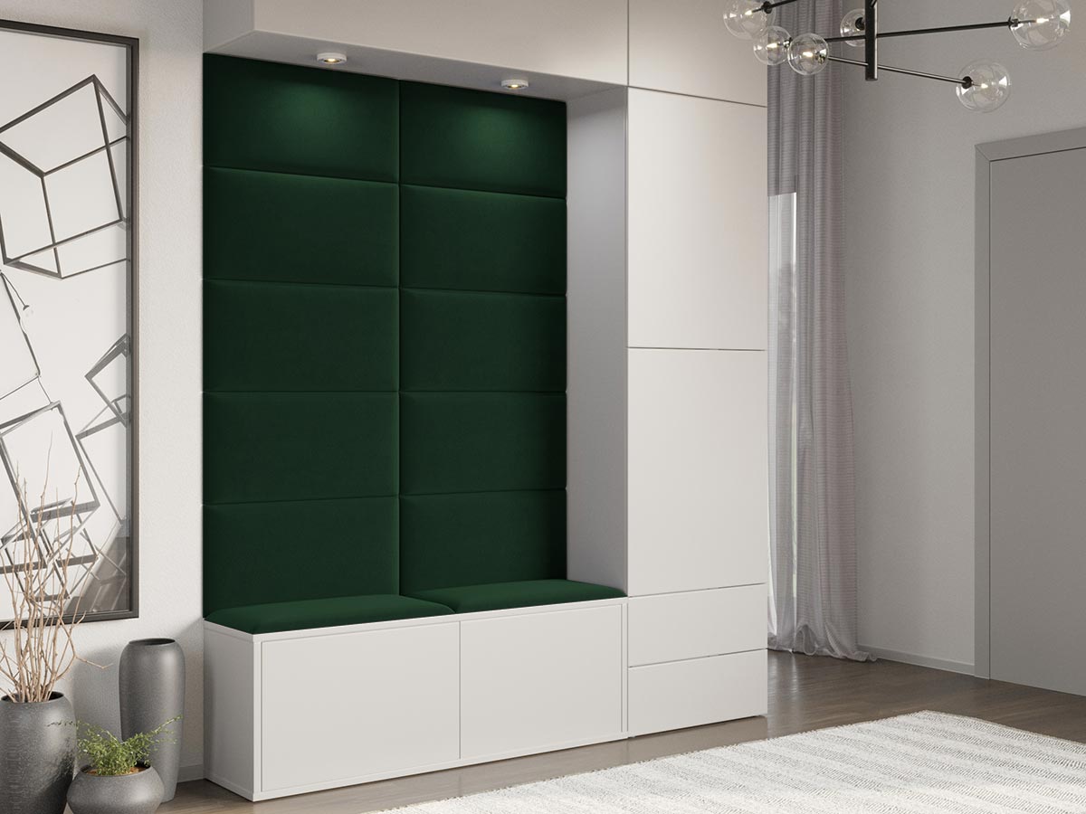Panou decorativ tapitat – dreptunghi O metoda simpla si rapida de a transforma casa, foloseste panourile tapitate pentru un plus de eleganta si stil . Panou decorativ tapitat – dreptunghi este un produs care ofera libertatea de creatie si design, puteti combina mai multe panouri din acceasi culoare si forma sau din culori si forme diferite . Se pot utiliza atat ca tablie tapitata pentru dormitoare matrimoniale sau pentru camere cu pat la perete, cat si pentru living, hol sau chiar sezut ori spatar. Structura de baza consta intr-o placa de MDF de 6mm , acoperita cu un strat suplimentar de spuma moale T18 cu grosime 3cm si material rezistent din stofa , disponibil in mai multe variante de culoare. Impotriva lovirilor accidentale de perete de catre copii sau adulti. Creeaza bariera termica si are rol fonoabsorbant. Aranjeaza in stilul dorit fara limita de dimensiune. Cand sunt folosite ca spatar sau sezut datorita spumei de 3cm. Pasul 1 – curatati peretele de praf si impuritati cu o carpa umezita usor cu alcool. Puneti pe jos placile in forma dorita pe perete. Pasul 2 – trasati o linie orizontala si una verticala cu ajutorul unui boloboc pentru a va asigura ca primul panou este pus corect, celelalte vor pastra aceasta linie. Pasul 3 – aplicati adezivul pentru multisuprafete sau benzile cu arici sau dublu adezive pe partea din spate in 4 sau 5 puncte. Pasul 4 – lipiti primul panou aliniat pe linia orizontala si verticala, apoi continuati cu urmatoarele panouri. Info Panou decorativ tapitat – dreptunghi Inaltime 30 cm / Latime 60 cm / Grosime 4 cm Utilizare la interior in camere uscate Pretul este pentru un panou Adezivul sau banda cu arici pentru fixare nu sunt incluse in pret Se recomanda utilizarea unui adeziv de interior / exterior pentru suprafete multiple, cu un timp de uscare de 5-10 minute, in asa fel incat sa se poata fixa sau repozitiona panoul pe perete. Adezivul se achizitioneaza separat. Imaginile sunt cu titlu de prezentare, in functie de modul in care au fost pozate sau proiectate 3D si de tipul ecranului dumeavoastra, pot diferi usor culorile / nuantele sau anumite detalii. Pretul afisat nu include mobilier, pat, scaune si alte accesorii sau obiecte de decor, tablouri, elemente de iluminat, asternuturi, covor etc. Exemple de pozitionare Panou decorativ tapitat – dreptunghi.