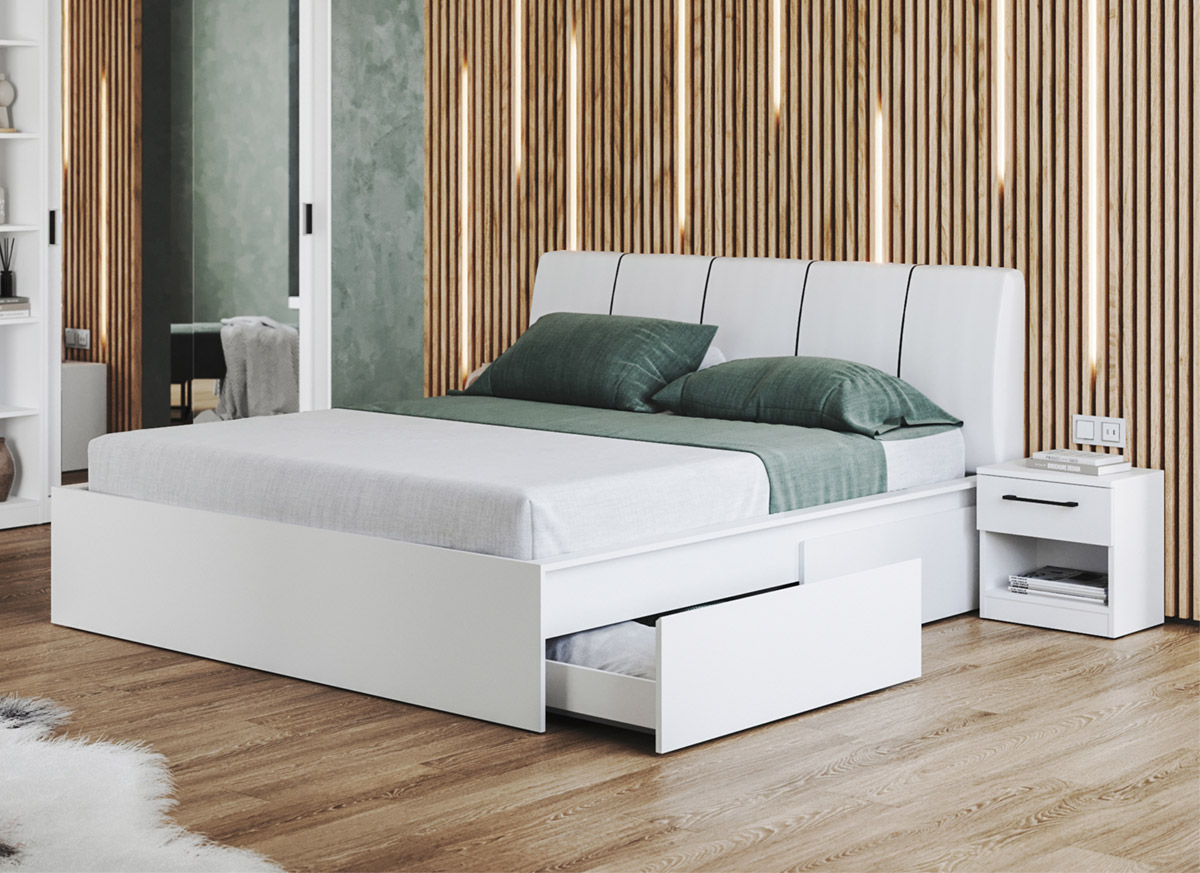 Pat alb tapițat – 180×200 , Fără sertare