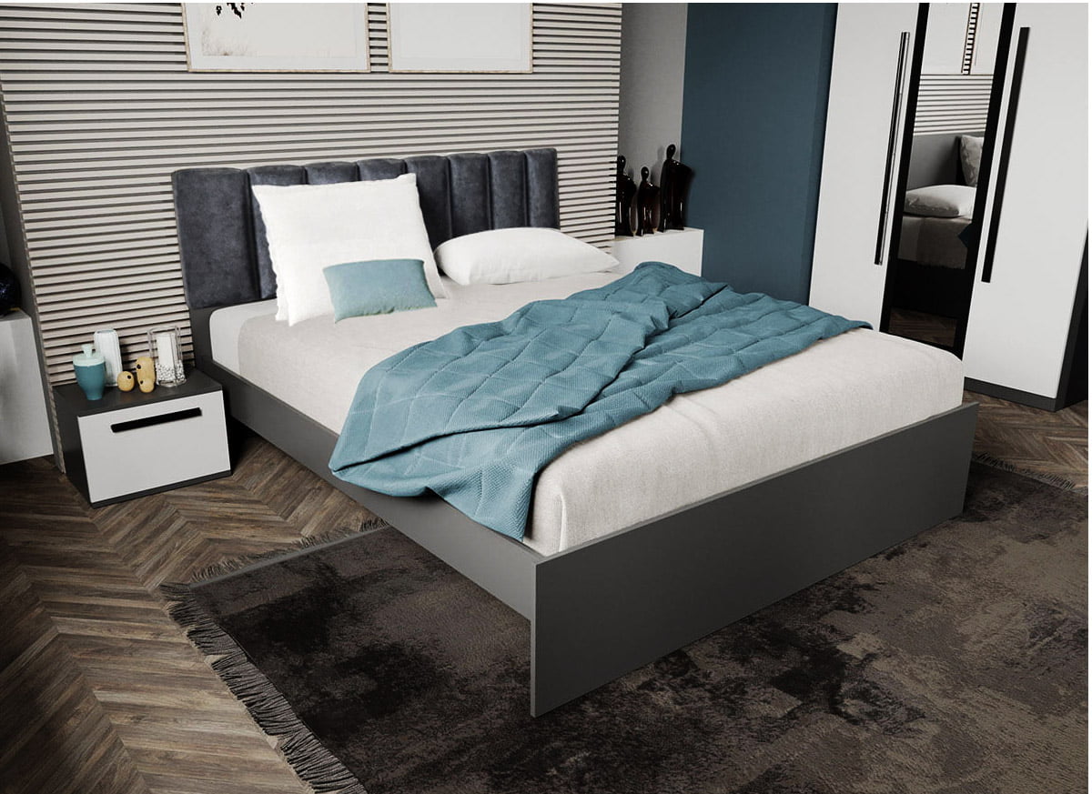 Pat Gri cu tapiterie gri inchis Pat Gri cu tapiterie gri inchis reprezinta elementul principal al oricarui dormitor, fiind cea mai mare piesa din camera. Patul asigura un confort aparte si are o structura rezistenta. Lada de depozitare optionala este disponibila cu 4 sertare (2 seturi) sau 2 sertare (1 set ). De asemenea, patul poate fi achizitionat in marimile de 140/160/180 x 200 cm. O viata sanatoasa depinde de o odihna echilibrata, iar alegerea unui pat cu o saltea potrivita este cel mai important pas in aceasta directie. Patul este cu siguranta elementul principal al dormitorului. Indiferent de preferinte, magazinul nostru online va asigura o gama de paturi potrivite oricarui stil. Dimensiuni: Latime: 151.4 cm sau 171.4 cm sau 191.4 cm (la alegere) Adancime: 203.2 cm Inaltime capat mare: 93 cm Inaltime capat mic: 37 cm Inaltime sezut fara saltea: 30.1 cm Salteaua intra in cadru 5.4 cm Informatii suplimentare Pat Gri cu tapiterie gri inchis: Atat patul, cat si suportul pentru saltea sunt realizate din PAL melaminat cu grosime de 16 mm. Finisajul Gri Antracit asigura un aer modern si elegant. Lada de depozitare optionala , sub forma de sertare este disponibila in 2 variante: 1 set cu 2 sertare, 2 seturi cu 4 sertare . Pretul afisat nu include salteua Salteaua compatibila patului are dimensiunile de 140 x 200 cm – 160 x 200 cm – 180 x 200 cm. Spatiul gol de sub pat, destinat sertarelor este de 20.8 cm. Video de prezentare familie NOTA: videoul de prezentare poate contine mai multe corpuri de mobilier sau mai putine in comparatie cu produsul de pe aceasta pagina. Scopul acestui video este de a detalia aspectul materialelor, accesoriilor cat si a familiei din care face parte.