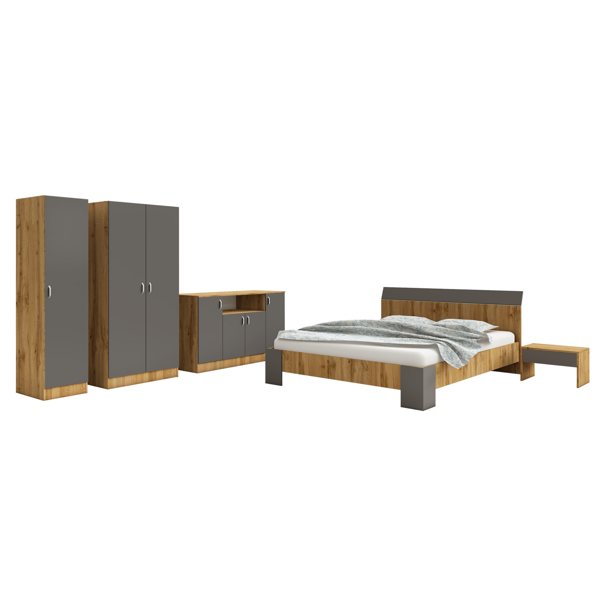 Pentru un somn odihnitor poti alege patul dublu Pedro Este un pat spatios si confortabil, fiind ideal pentru a oferi un somn odihnitor. Cu un design simplu si elegant, cu linii drepte si combinatii de culori calde si odihnitoare, patul Pedro se va incadra armonios in orice dormitor. Imbina confortul si functionalitatea cu patul Pedro Patul Pedro este un pat dublu ce are o latime de 146,4 cm si o lungime de 207 cm, fiind compatibil cu o saltea standard de 140 x 200 cm, ce se achizitioneaza separat. Inaltimea de 33 cm este foarte confortabila si te poti aseza usor. Patul Pedro are o combinatie decorativa inspirata, cu picioarele si tablia din Antracit, iar carcasa cu decor Stejar Wotan, ce adauga un plus de eleganta si un aspect natural, completand orice stil de amenajare interioara. Tablia patului are o inaltime de 15 cm, protejand perete si oferind o pozitie confortabila la citit. Fiind realizat din PAL melaminat de 16 mm, patul este rezistent la uzura, durabil si are suprafetele netede si uniforme. In pachetul de livrare ai toate elementele necesare pentru montaj, fiind usor de asmablat. Comanda acum de pe haaus patul Pedro, la un pret imbatabil. • Materiale: PAL melaminat de 16 mm, accesorii metalice, picioruse cui. • Dimensiuni: L 207 x l 146.4 x H 33 / 85 cm • Garantie 2 ani • Produsul se livreaza demontat, in cutii, cu toate accesoriile necesare asamblarii acestuia. *Salteaua si celelalte obiecte de decor NU sunt incluse. • Dimensiuni pat: L 207 x l 146.4 x H 33 / 85 cm • Dimensiune pentru saltea: L 200 x l 140 cm Decor picioare + tablie lonjeron Decor carcasa