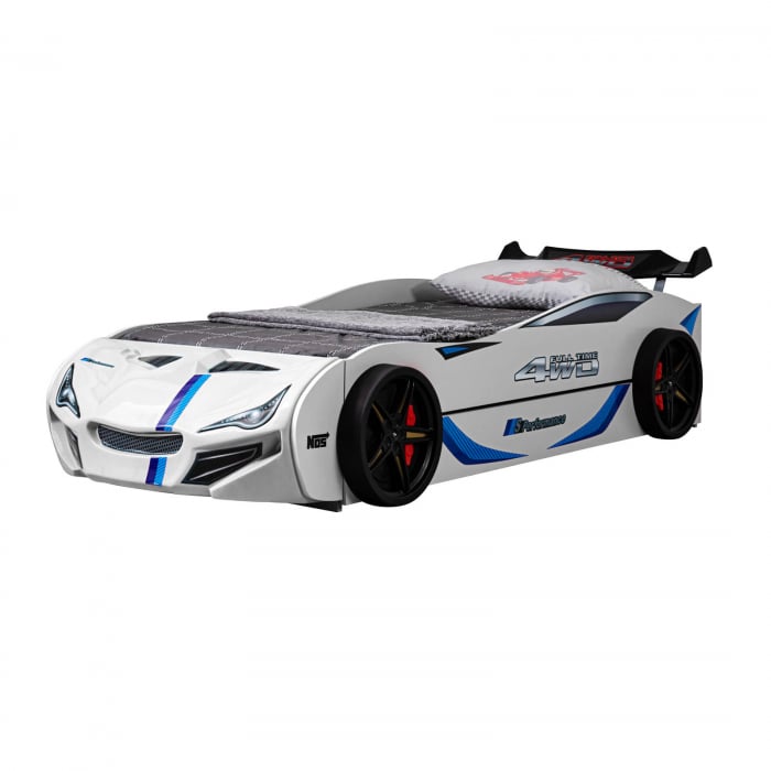 Pat pentru copii masina ECO DUBLU MVN1, alb, 90×200 cm