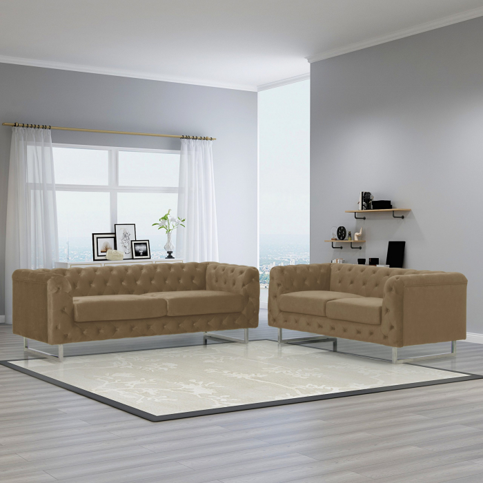Set canapele catifea, 3+2 Chester Cappuccino Yvette Descriere generală Set canapele catifea, 3+2 locuri Chester cappuccino Yvette cu design modern, fără spații de depozitare, cu husă nedetașabilă din material rezistent la uzură, format…