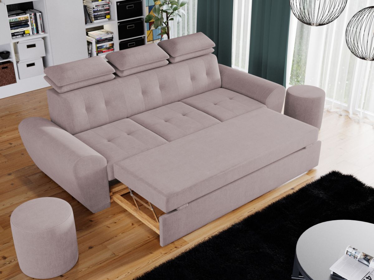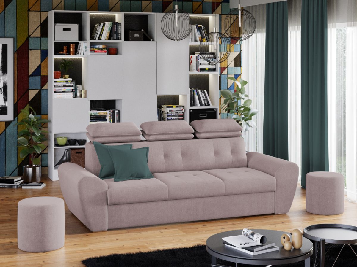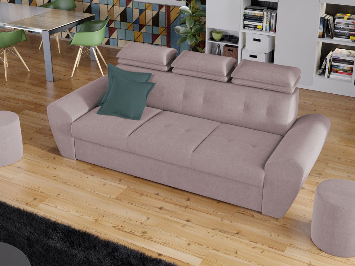 Set Canapea si Fotolii Barini Roze Set Canapea si Fotolii Barini Roze are un design modern , cu forme rotunjite. Tetierele reglabile in mai multe trepte asigura confortul necesar in momentele de relaxare, sustinand capul exact in pozitia dorita. Picioarele argintii si butonii de pe sezut si de pe spatar confera eleganta acestui set. Imbina cu succes functionalitatea cu designul, canapeaua transformandu-se rapid intr-un pat confortabil de 185 x 130 cm . Setul este potrivit pentru un living cu dimensiuni generoase. Canapeaua are dimensiunile de: 245 cm lungime, 100 cm latime, 95 cm inaltime totala , iar fotoliul de: 116 cm lungime, 93 cm latime, 90 cm inaltime totala . Setul este tapitat cu stofa de calitate pe diverse culori. Atentie: Pretul afisat nu include alte accesorii sau obiecte de decor. Taburetele, pernele deco si draperiile se pot achizitiona optional. Livrare gratuita si rapida, 4-10 zile lucratoare prin flota proprie Suntem producatori de tapiterii, fara intermediari Toate piesele de tapiterii au o garantie de 2 ani Sezutul canapelei si al fotoliilor este din arcuri sinusoidale si poliuretan . Extensia canapelei este din poliuretan High Resilience. Scheletul este rezistent, realizat pe structura solida de fag si pal. Extensia de tip sertar este pozitionata sub sezutul canapelei. Se deschide ca un sertar, apoi se ridica salteaua din interiorul acestuia. Set Canapea si Fotolii Barini Roze include canapeaua si cele doua fotolii si se incadreaza cu usurinta in majoritatea locuintelor indiferent de stilul acestora. Puteti alege din mai multe culori pentru stofa. Produsele disponibile le puteti vedea aici Modele Barini . Videoclipul poate contine alta nuanta decat cea de pe pagina produsului, acesta avand ca scop prezentarea familiei pentru a se reda in detaliu aspectul materialului. Dimensiuni Canapea Barini Lungime: 245 cm Latime: 100 cm Lungime intre brate: 185 cm Inaltime sezut: 44 cm Adancime sezut: 63 cm Inaltime totala: 95 cm Inaltime brate: 52 cm Lungime brate: 95 cm Dimensiuni extinsa Lungime extinsa: 185 cm Adancime extinsa: 130 cm Dimensiuni Fotoliu Barini Latime: 116 cm Adancime: 93 cm Inaltime: 90 cm Inaltime fara tetiera: 73 cm Latime intre brate: 60 cm Inaltime sezut: 45 cm Inaltime spatar cu tetiera: 60 cm Inaltime spatar fara tetiera: 34 cm Adancime sezut: 60 cm Lungime brate: 93 cm Tapiterie Set Canapea si Fotolii Barini Roze Tapiteria produselor este din stofa Roze . Nuanta acestui set nu este pretentioasa, mascheaza eventualele evenimente neplacute prin care se poate murdari sau pata si se integreaza perfect in majoritatea locuintelor. Intretinere: se recomanda ca praful sa se stearga cu un material textil moale (finet) umed si sa nu se curete cu agenti chimici (diluant, acetona). Imaginile sunt cu titlu de prezentare si pot avea mici diferente de nuante in functie de display. Dimensiunile sunt exprimate în centimetri și pot oscila între ± 50 mm.