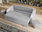Set Canapea si Fotolii Julia Gri Deschis Set Canapea si Fotolii Julia Gri Deschis este format dintr-o canapea si doua fotolii clasice si solide. Ornamentele aplicate ale bratelor completeaza forma eleganta a acestui set incapator. Canapeaua imbina stilul cu functionalitatea prin faptul ca este prevazuta cu lada pentru depozitare si se transforma rapid si usor intr-un pat spatios de 190 x 150 cm atunci cand scoti pernele si tragi sezutul in exterior coborand spatarul. Aceasta are dimensiunea de: 230 cm lungime, 106 cm latime, 80 cm inaltime totala . Fotoliul are dimensiunea de: 85 cm lungime, 87 cm latime, 80 cm inaltime totala . Ofera un confort sporit prin pernele detasabile . Setul este tapitat cu stofa de calitate pe diverse culori. Atentie: Pretul afisat nu include alte accesorii sau obiecte de decor. Taburetele, pernele deco si draperiile se pot achizitiona optional. Livrare gratuita si rapida, 4-10 zile lucratoare prin flota proprie Suntem producatori de tapiterii, fara intermediari Toate piesele de tapiterii au o garantie de 2 ani Sezutul canapelei, al fotoliilor si extensia canapelei sunt pe relaxa (arcuri elicoidale si poliuretan) . Scheletul este rezistent, realizat pe structura solida de fag si pal. Extensia canapelei este de tip Doppelliege, ce prezinta un sistem actionat prin role, astfel ca partea de sezut se trage si permite partii de spatar sa gliseze spre partea din fata si sa se pozitioneze orizontal. Set Canapea si Fotolii Julia Gri Deschis include canapeaua si cele doua fotolii si se incadreaza cu usurinta in majoritatea locuintelor indiferent de stilul acestora. Puteti alege din mai multe culori pentru stofa. Produsele disponibile le puteti vedea aici Modele Julia . Dimensiuni Canapea Julia Lungime: 230 cm Latime: 106 cm Lungime intre brate: 190 cm Inaltime sezut: 45 cm Inaltime: 80 cm Adancime sezut: 80 cm Dimensiuni extinsa Lungime extinsa: 190 cm Adancime extinsa: 150 cm Dimensiuni Fotoliu Julia Latime: 85 cm Adancime: 87 cm Inaltime: 80 cm Latime intre brate: 58 cm Inaltime sezut: 48 cm Grosime brate: 12-13 cm Tapiterie Set Canapea si Fotolii Julia Gri Deschis Tapiteria produselor este din stofa Gri Deschis . Nuanta acestui set nu este pretentioasa, mascheaza eventualele evenimente neplacute prin care se poate murdari sau pata si se integreaza perfect in majoritatea locuintelor. Intretinere: se recomanda ca praful sa se stearga cu un material textil moale (finet) umed si sa nu se curete cu agenti chimici (diluant, acetona). Imaginile sunt cu titlu de prezentare si pot avea mici diferente de nuante in functie de display. Dimensiunile sunt exprimate în centimetri si pot oscila între ± 50 mm.