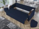 Set Canapea si Fotolii Verona Albastru Set Canapea si Fotolii Verona Albastru este format dintr-o canapea si doua fotolii clasice si solide. Ornamentul bratelor ofera un plus de eleganta prin imitarea unei piese din lemn masiv. Canapeaua imbina stilul cu functionalitatea prin faptul ca este prevazuta cu lada pentru depozitare si se transforma rapid si usor intr-un pat spatios de 190 x 150 cm atunci cand scoti pernele si tragi sezutul in exterior coborand spatarul. Aceasta are dimensiunea de: 220 cm lungime, 102 cm latime, 85 cm inaltime totala . Fotoliul are dimensiunea de: 86 cm lungime, 87 cm latime, 85 cm inaltime totala . Ofera un confort sporit prin pernele detasabile . Setul este tapitat cu stofa de calitate pe diverse culori. Atentie: Pretul afisat nu include alte accesorii sau obiecte de decor. Taburetele, pernele deco si draperiile se pot achizitiona optional. Livrare gratuita si rapida, 4-10 zile lucratoare prin flota proprie Suntem producatori de tapiterii, fara intermediari Toate piesele de tapiterii au o garantie de 2 ani Sezutul canapelei, al fotoliilor si extensia canapelei sunt pe relaxa (arcuri elicoidale si poliuretan) . Scheletul este rezistent, realizat pe structura solida de fag si pal. Extensia canapelei este de tip Doppelliege, ce prezinta un sistem actionat prin role, astfel ca partea de sezut se trage si permite partii de spatar sa gliseze spre partea din fata si sa se pozitioneze orizontal. Set Canapea si Fotolii Verona Albastru include canapeaua si cele doua fotolii si se incadreaza cu usurinta in majoritatea locuintelor indiferent de stilul acestora. Puteti alege din mai multe culori pentru stofa. Produsele disponibile le puteti vedea aici Modele Verona . Dimensiuni Canapea Verona Lungime: 220 cm Latime: 102 cm Lungime intre brate: 190 cm Inaltime sezut: 44 cm Inaltime: 85 cm Inaltime fara perne: 76 cm Adancime sezut cu perne: 58 cm Adancime sezut fara perne: 80 cm Inaltime picioruse: 3 cm Dimensiuni extinsa Lungime extinsa: 190 cm Adancime extinsa: 150 cm Dimensiuni Fotoliu Verona Latime: 86 cm Adancime: 87 cm Inaltime: 85 cm Latime intre brate: 57 cm Inaltime sezut: 44 cm Inaltime fara perne: 76 cm Adancime sezut cu perne: 58 cm Adancime sezut fara perne: 80 cm Inaltime picioruse: 3 cm Tapiterie Set Canapea si Fotolii Verona Albastru Tapiteria produselor este din stofa Albastra . Nuanta acestui set nu este pretentioasa, mascheaza eventualele evenimente neplacute prin care se poate murdari sau pata si se integreaza perfect in majoritatea locuintelor. Intretinere: se recomanda ca praful sa se stearga cu un material textil moale (finet) umed si sa nu se curete cu agenti chimici (diluant, acetona). Imaginile sunt cu titlu de prezentare si pot avea mici diferente de nuante in functie de display. Dimensiunile sunt exprimate în centimetri si pot oscila între ± 50 mm.