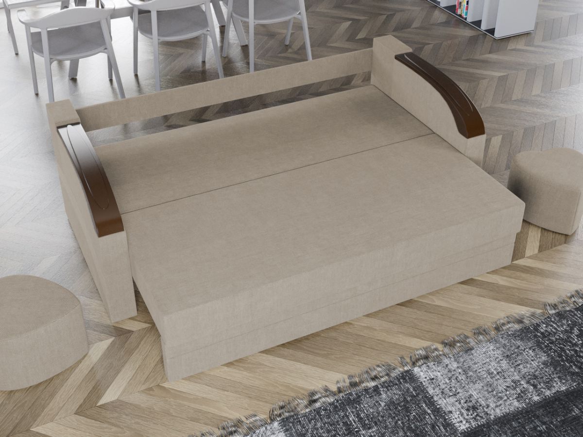 Set Canapea si Fotolii Verona Crem Set Canapea si Fotolii Verona Crem este format dintr-o canapea si doua fotolii clasice si solide. Ornamentul bratelor ofera un plus de eleganta prin imitarea unei piese din lemn masiv. Canapeaua imbina stilul cu functionalitatea prin faptul ca este prevazuta cu lada pentru depozitare si se transforma rapid si usor intr-un pat spatios de 190 x 150 cm atunci cand scoti pernele si tragi sezutul in exterior coborand spatarul. Aceasta are dimensiunea de: 220 cm lungime, 102 cm latime, 85 cm inaltime totala . Fotoliul are dimensiunea de: 86 cm lungime, 87 cm latime, 85 cm inaltime totala . Ofera un confort sporit prin pernele detasabile . Setul este tapitat cu stofa de calitate pe diverse culori. Atentie: Pretul afisat nu include alte accesorii sau obiecte de decor. Taburetele, pernele deco si draperiile se pot achizitiona optional. Livrare gratuita si rapida, 4-10 zile lucratoare prin flota proprie Suntem producatori de tapiterii, fara intermediari Toate piesele de tapiterii au o garantie de 2 ani Sezutul canapelei, al fotoliilor si extensia canapelei sunt pe relaxa (arcuri elicoidale si poliuretan) . Scheletul este rezistent, realizat pe structura solida de fag si pal. Extensia canapelei este de tip Doppelliege, ce prezinta un sistem actionat prin role, astfel ca partea de sezut se trage si permite partii de spatar sa gliseze spre partea din fata si sa se pozitioneze orizontal. Set Canapea si Fotolii Verona Crem include canapeaua si cele doua fotolii si se incadreaza cu usurinta in majoritatea locuintelor indiferent de stilul acestora. Puteti alege din mai multe culori pentru stofa. Produsele disponibile le puteti vedea aici Modele Verona . Dimensiuni Canapea Verona Lungime: 220 cm Latime: 102 cm Lungime intre brate: 190 cm Inaltime sezut: 44 cm Inaltime: 85 cm Inaltime fara perne: 76 cm Adancime sezut cu perne: 58 cm Adancime sezut fara perne: 80 cm Inaltime picioruse: 3 cm Dimensiuni extinsa Lungime extinsa: 190 cm Adancime extinsa: 150 cm Dimensiuni Fotoliu Verona Latime: 86 cm Adancime: 87 cm Inaltime: 85 cm Latime intre brate: 57 cm Inaltime sezut: 44 cm Inaltime fara perne: 76 cm Adancime sezut cu perne: 58 cm Adancime sezut fara perne: 80 cm Inaltime picioruse: 3 cm Tapiterie Set Canapea si Fotolii Verona Crem Tapiteria produselor este din stofa Crem . Nuanta acestui set nu este pretentioasa, mascheaza eventualele evenimente neplacute prin care se poate murdari sau pata si se integreaza perfect in majoritatea locuintelor. Intretinere: se recomanda ca praful sa se stearga cu un material textil moale (finet) umed si sa nu se curete cu agenti chimici (diluant, acetona). Imaginile sunt cu titlu de prezentare si pot avea mici diferente de nuante in functie de display. Dimensiunile sunt exprimate în centimetri si pot oscila între ± 50 mm.