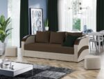 Set Canapea si Fotolii Verona Maro / Crem Set Canapea si Fotolii Verona Maro / Crem este format dintr-o canapea si doua fotolii clasice si solide. Ornamentul bratelor ofera un plus de eleganta prin imitarea unei piese din lemn masiv. Canapeaua imbina stilul cu functionalitatea prin faptul ca este prevazuta cu lada pentru depozitare si se transforma rapid si usor intr-un pat spatios de 190 x 150 cm atunci cand scoti pernele si tragi sezutul in exterior coborand spatarul. Aceasta are dimensiunea de: 220 cm lungime, 102 cm latime, 85 cm inaltime totala . Fotoliul are dimensiunea de: 86 cm lungime, 87 cm latime, 85 cm inaltime totala . Ofera un confort sporit prin pernele detasabile . Setul este tapitat cu stofa de calitate pe diverse culori. Atentie: Pretul afisat nu include alte accesorii sau obiecte de decor. Taburetele, pernele deco si draperiile se pot achizitiona optional. Livrare gratuita si rapida, 4-10 zile lucratoare prin flota proprie Suntem producatori de tapiterii, fara intermediari Toate piesele de tapiterii au o garantie de 2 ani Sezutul canapelei, al fotoliilor si extensia canapelei sunt pe relaxa (arcuri elicoidale si poliuretan) . Scheletul este rezistent, realizat pe structura solida de fag si pal. Extensia canapelei este de tip Doppelliege, ce prezinta un sistem actionat prin role, astfel ca partea de sezut se trage si permite partii de spatar sa gliseze spre partea din fata si sa se pozitioneze orizontal. Set Canapea si Fotolii Verona Maro / Crem include canapeaua si cele doua fotolii si se incadreaza cu usurinta in majoritatea locuintelor indiferent de stilul acestora. Puteti alege din mai multe culori pentru stofa. Produsele disponibile le puteti vedea aici Modele Verona . Dimensiuni Canapea Verona Lungime: 220 cm Latime: 102 cm Lungime intre brate: 190 cm Inaltime sezut: 44 cm Inaltime: 85 cm Inaltime fara perne: 76 cm Adancime sezut cu perne: 58 cm Adancime sezut fara perne: 80 cm Inaltime picioruse: 3 cm Dimensiuni extinsa Lungime extinsa: 190 cm Adancime extinsa: 150 cm Dimensiuni Fotoliu Verona Latime: 86 cm Adancime: 87 cm Inaltime: 85 cm Latime intre brate: 57 cm Inaltime sezut: 44 cm Inaltime fara perne: 76 cm Adancime sezut cu perne: 58 cm Adancime sezut fara perne: 80 cm Inaltime picioruse: 3 cm Tapiterie Set Canapea si Fotolii Verona Maro / Crem Tapiteria produselor este din stofa Maro si Crem . Nuantele acestui set nu sunt pretentioase, mascheaza eventualele evenimente neplacute prin care se pot murdari sau pata si se integreaza perfect in majoritatea locuintelor. Intretinere: se recomanda ca praful sa se stearga cu un material textil moale (finet) umed si sa nu se curete cu agenti chimici (diluant, acetona). Imaginile sunt cu titlu de prezentare si pot avea mici diferente de nuante in functie de display. Dimensiunile sunt exprimate în centimetri si pot oscila între ± 50 mm.
