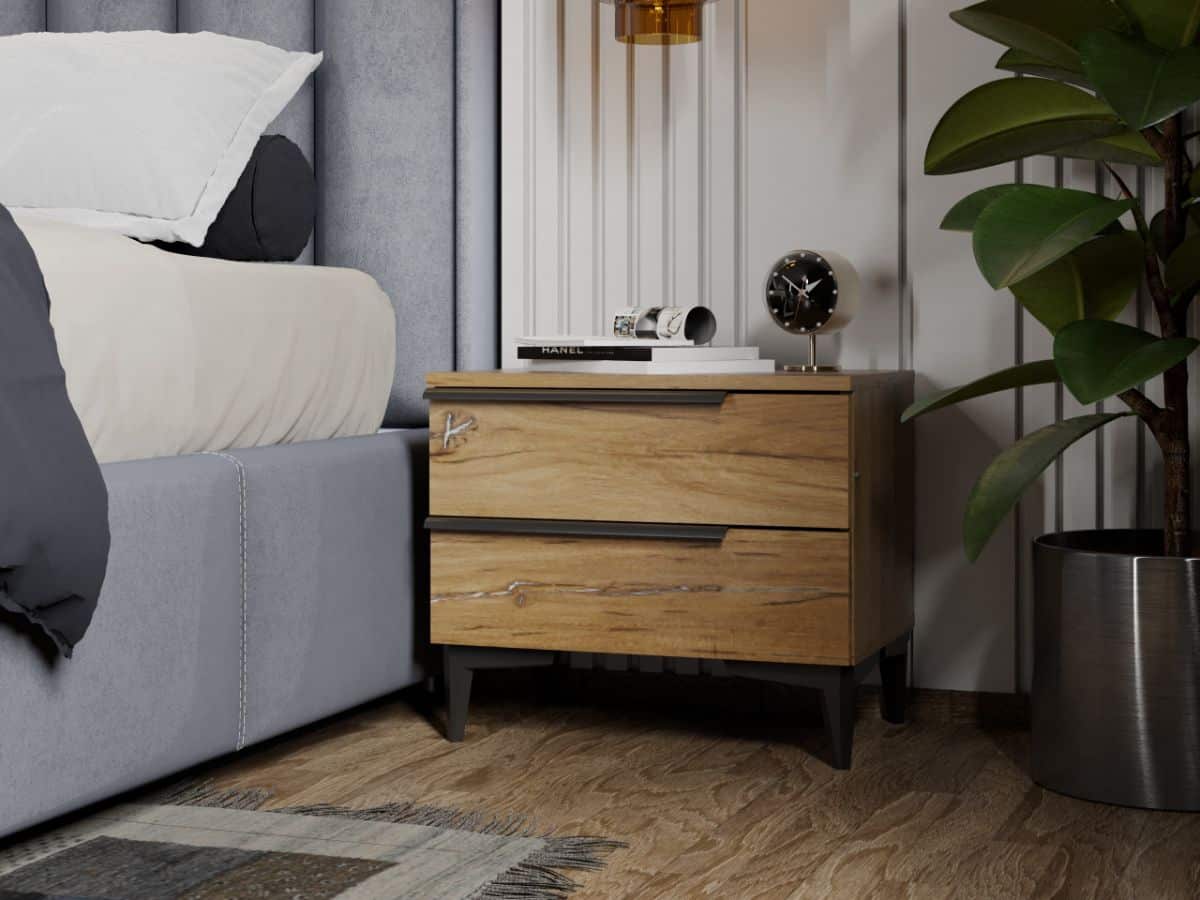 Set Mobila Dormitor Beverley tapitat Un dormitor matrimonial ce are un aspect modern , imbinand finisajul Flagstaff Oak cu manerele si picioarele negre , creand un ambient cald si primitor. Dulapul cu 4 usi are dimensiuni generoase. Restul corpurilor de mobilier, comoda si noptierele, ofera la randul lor spatii de depozitare in completarea dulapului, prin sertare . Corpuri Set Mobila Dormitor Beverley tapitat Dulap – L 165 x A 52 x H 204cm – Schita Montaj Compartimentat cu 8 polite si o bara de umerase. Pat Blanco Fix Tapitat Gri – L 180 x A 220 x H 109,5cm– Schita Montaj Comoda – L 111 x A 40 x H 80cm – Schita Montaj Cu 3 sertare. Set noptiere – L 51 x A 35 x H 44cm – Schita Montaj Fiecare cu cate doua sertare. Corp sertare (optional) – L 80 x A 37 x H 34cm – Schita Montaj Cu doua sertare. Livrare Gratuita prin flota proprie Suntem producatori de mobilier Toate corpurile au o garantie de 2 ani Pat Blanco Fix Tapitat Gri Pat Blanco Fix Tapitat Gri are un design modern si elegant, datorita stofei de culoare gri, a picioarelor argintii, cat si datorita formelor simple si armonioase ale tabliei. Tapiteria produsului este din stofa gri. Salteaua compatibila este de 160×200 cm , intra intre lateralele patului si nu este inclusa in pret. Dimensiuni: Latime: 180 cm Latime tablie: 177 cm Adancime: 220 cm Inaltime: 109.5 cm Inaltime picior: 4 cm Inaltime sezut fara saltea: 36 cm Salteaua intra in cadrul patului 7 cm Grosime laterale: 10 cm Set Mobila Dormitor Beverley tapitat O solutie ideala pentru un dormitor matrimonial. Corpurile din Set Mobila Dormitor Beverley tapitat sunt realizate din PAL melaminat de 16 mm cu finisaj Flagstaff Oak , care creeaza un spatiu primitor si un ambient cald. Cantul aplicat este unul de 0,6 ce le permite muchiilor sa fie placute la atingere fiind finisate si atent retusate. Pretul afisat nu include alte accesorii sau obiecte de decor (tablouri, elemente de iluminat, asternuturi, covor etc.) Produsul se livreaza demontat si este insotit de accesorii si instructiuni de asamblare. Dimensiunile sunt exprimate in cm si pot oscila intre ± 10 mm.