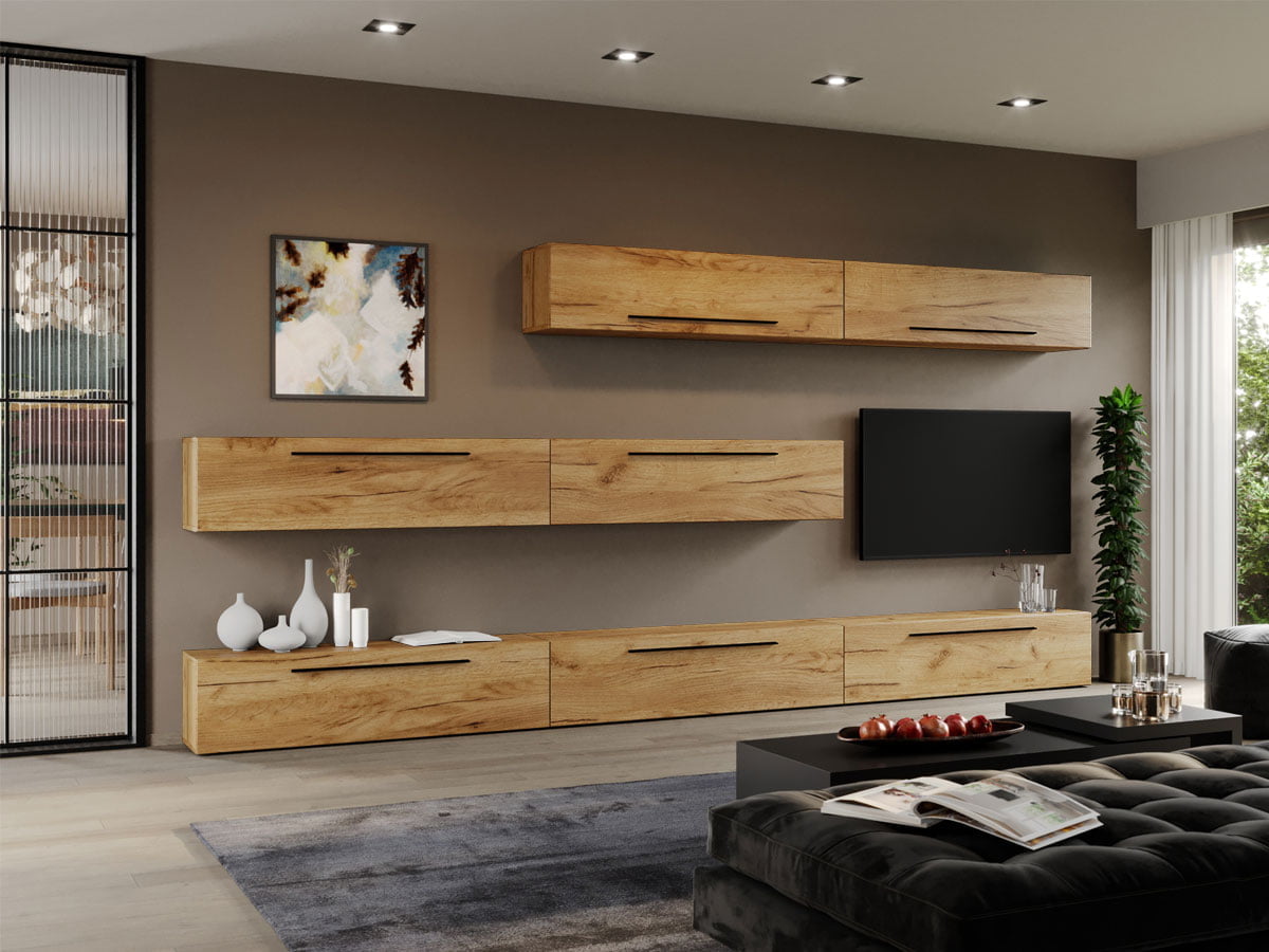 Descoperă eleganța și funcționalitatea a celui mai nou Set Mobila Living – Poem – C20 – un ansamblu care transformă sufrageria ta într-un spațiu rafinat și modern. Corpurile modulare inteligent proiectate îți oferă versatilitate și libertate în aranjarea lor, creând un ambient personalizat și adaptat nevoilor tale. Cele mai recente trenduri în designul de mobilier pentru living sunt reflectate în acest set, de la corpuri suspendate care adaugă un plus de aerisire spațiului, la un dulap living generos în spațiu pentru depozitare, completat de o comoda TV elegantă și funcțională. Finisajul stejar auriu adaugă un caracter cald și sofisticat, creând astfel un decor contemporan și plin de personalitate. Fiecare detaliu este gândit cu atenție, de la polițe bine proporționate la corpul decorativ care adaugă un plus de stil. Acest set de mobilă living moderna îți transformă sufrageria într-un loc unde eleganța se împletește ideal cu funcționalitatea, oferindu-ți o experiență de trăire excepțională în fiecare zi. Specificații: Componente: 4 module suspendate și 3 module la sol. Accesorii incluse: Feronerie, balamale, limitator foarfece (pentru corpurile inferioare), telescop gaz (pentru corpurile superioare), mânere și schițe de montaj pentru fiecare corp. Material: PAL melaminat cu grosime de 16 mm. Finisaj: Stejar auriu (K03). Tip corpuri: Modulare (pot fi poziționate în ordinea dorită). Diagonală TV recomandată: 125 cm/49,2″ (Corpurile fiind modulare, permit alegerea unei dimensiuni mai mici sau mai mari pentru televizor) *Elementele de suspendare a corpurilor pe perete nu sunt incluse! Dimensiuni exterioare Set Mobila Living – Poem – C20: Lățime : 360 cm Adâncime : 25 cm Înălțime : 185 cm *Dimensiunile sunt exprimate în centimetri! *Dimensiunile produsului pot varia cu ± 10 mm. Corpuri, dimensiuni și schițe de montaj: 3x Comodă tv: L 120 x A 25 x H 30 cm Descarcă schița de montaj. 2x Corp orizontal inferior: L 120 x A 25 x H 30 cm Descarcă schița de montaj. 2x Corp orizontal superior: L 120 x A 25 x H 30 cm Descarcă schița de montaj. *Produsul se expediază în colete, demontat și este însoțit de toate accesoriile și schița de montaj aferente. Atenție! Costul produsului nu include accesorii sau elemente decorative suplimentare, precum tablouri, lămpi, lenjerii de pat sau covoare. *Scopul fotografiilor este de a oferi o reprezentare generală, însă există posibilitatea unor mici variații de culoare.