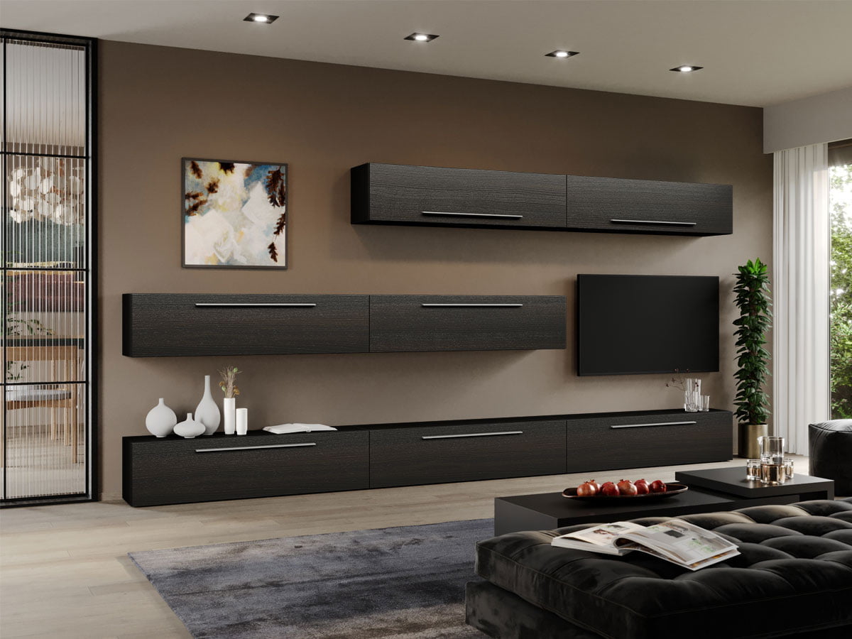 Descoperă eleganța și funcționalitatea a celui mai nou Set Mobila Living – Storm – C20 – un ansamblu care transformă sufrageria ta într-un spațiu rafinat și modern. Corpurile modulare inteligent proiectate îți oferă versatilitate și libertate în aranjarea lor, creând un ambient personalizat și adaptat nevoilor tale. Cele mai recente trenduri în designul de mobilier pentru living sunt reflectate în acest set, de la corpuri suspendate care adaugă un plus de aerisire spațiului, la un dulap living generos în spațiu pentru depozitare, completat de o comoda TV elegantă și funcțională. Finisajul ferrara adaugă un caracter cald și sofisticat, creând astfel un decor contemporan și plin de personalitate. Fiecare detaliu este gândit cu atenție, de la polițe bine proporționate la corpul decorativ care adaugă un plus de stil. Acest set de mobilă living moderna îți transformă sufrageria într-un loc unde eleganța se împletește ideal cu funcționalitatea, oferindu-ți o experiență de trăire excepțională în fiecare zi. Specificații: Componente: 4 module suspendate și 3 la sol Accesorii incluse: Feronerie, balamale, limitator foarfece (pentru corpurile inferioare), telescop gaz (pentru corpurile superioare), mânere și schițe de montaj pentru fiecare corp. Material: PAL melaminat cu grosime de 16 mm. Finisaj: Ferrara . Tip corpuri: Modulare (pot fi poziționate în ordinea dorită). Diagonală TV recomandată: 125 cm/49,2″ (Corpurile fiind modulare, permit alegerea unei dimensiuni mai mici sau mai mari pentru televizor) *Elementele de suspendare a corpurilor pe perete nu sunt incluse! Dimensiuni exterioare Set Mobila Living – Storm – C20: Lățime : 360 cm Adâncime : 25 cm Înălțime : 185 cm *Dimensiunile sunt exprimate în centimetri! *Dimensiunile produsului pot varia cu ± 10 mm. Corpuri, dimensiuni și schițe de montaj: 3x Comoda tv: L 120 x A 25 x H 30 cm Descarcă schița de montaj. 2x Corp orizontal inferior: L 120 x A 25 x H 30 cm Descarcă schița de montaj. 2x Corp orizontal superior: L 120 x A 25 x H 30 cm Descarcă schița de montaj. *Produsul se expediază în colete, demontat și este însoțit de toate accesoriile și schița de montaj aferente. Atenție! Costul produsului nu include accesorii sau elemente decorative suplimentare, precum tablouri, lămpi, lenjerii de pat sau covoare. *Scopul fotografiilor este de a oferi o reprezentare generală, însă există posibilitatea unor mici variații de culoare.