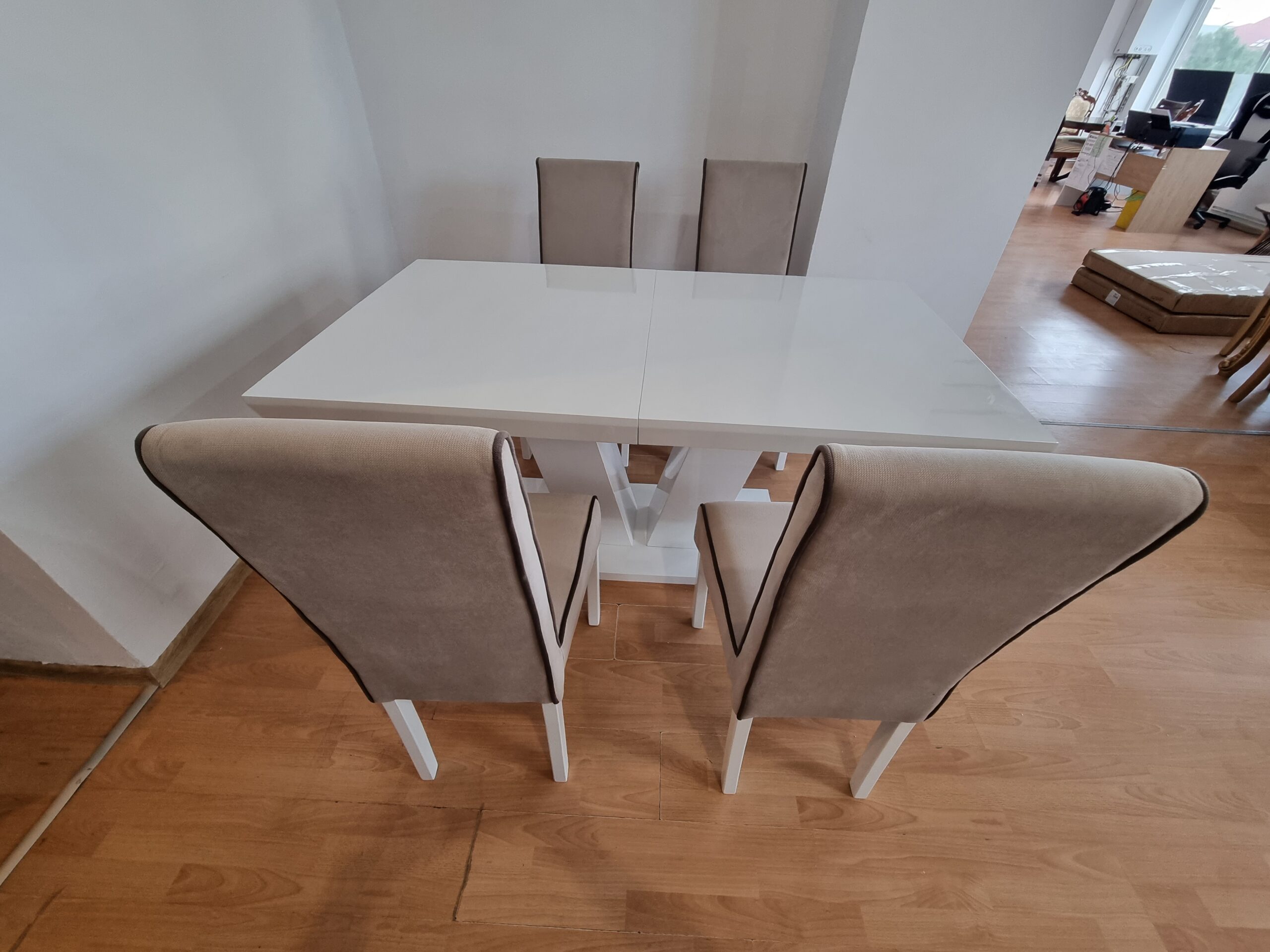 Setul Naomy cu masa extensibila , culoarea alb . Se integreaza perfect in livingul dumneavoastra oferindu-i o nota de eleganta.