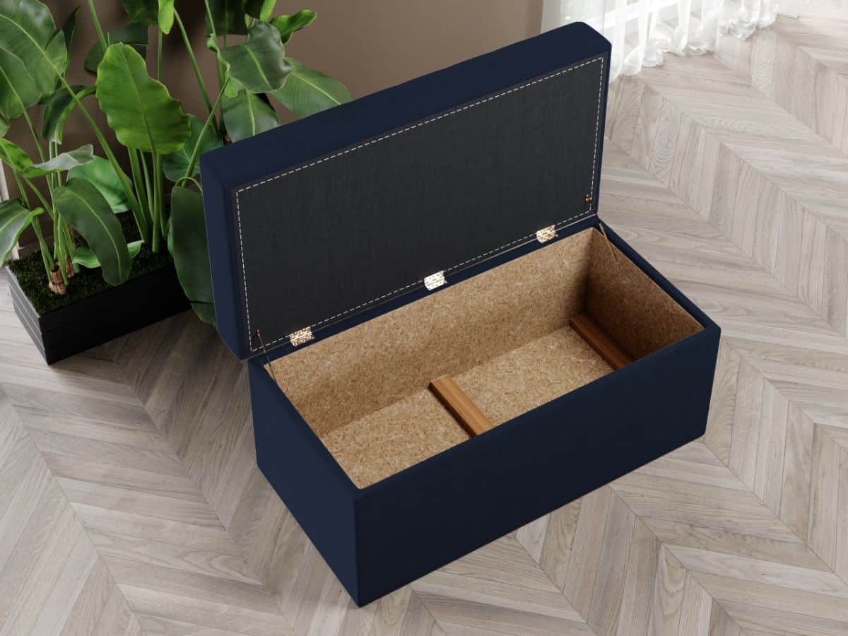 Taburet Carlos 2L Albastru Un taburet ce imbina stilul cu utilitatea prin faptul ca in interior are spatiu de depozitare. Capacul/Sezutul este pe balamale, astfel il puteti folosi pentru a pune obiecte uzuale care nu doriti sa fie la vedere, ca de exemplu papuci de casa, paturele etc. Cu un design clasic si elegant, Taburet Carlos 2L Albastru se remarca prin calitatea constructiei si a materialelor, din lemn de fag si pal. Astfel este ideal pentru o camera de zi, hol sau pentru spatiile mici din locuinta dumneavoastra. Distingandu-se printr-un design echilibrat, acest taburet va aduce o completare deosebita in camera dvs. de zi, pe hol sau in dormitor. Poate fi folosit si ca masa laterala sau bancheta pentru picioare. Stofele cu care este tapitat se regasesc si in produsele noastre si pot completa cu usurinta o canapea sau un coltar integrandu-se perfect. Livrare gratuita si rapida, 4-10 zile lucratoare prin flota proprie Suntem producatori de tapiterii, fara intermediari Toate piesele de tapiterii au o garantie de 2 ani Taburet Carlos 2L Albastru se incadreaza cu usurinta in majoritatea locuintelor indiferent de stilul acestora. Capacul are o croiala ce creaza un stil elegant. Nu necesita montaj, il amplasati direct in zona dorita. Are multiple intrebuintari, de la un scaun in living, la suport de picioare cand stati pe canapea, masuta langa coltar, taburet in dormitor sau chiar hol. Puteti alege din mai multe culori pentru stofa, produsele disponibile le puteti veadea aici Modele Taburet Carlos 2L . Dimensiuni Taburet Carlos 2L Albastru Lungime: 90 cm Latime: 45 cm Inaltime: 43 cm Tapiterie Taburet Carlos 2L Albastru Tapiteria produsului este din stofa Albastra. Nuanta acestui produs nu este pretentioasa si mascheaza eventualele evenimente neplacute prin care se poate murdari sau pata si se integreaza perfect in majoritatea locuintelor. Intretinere: se recomanda ca praful sa se stearga cu un material textil moale (finet) umed si sa nu se curete cu agenti chimici (diluant, acetona). Imaginile sunt cu titlu de prezentare si pot avea mici diferente de nuante in functie de display. Dimensiunile sunt exprimate în centimetri si pot oscila între ± 50 mm.