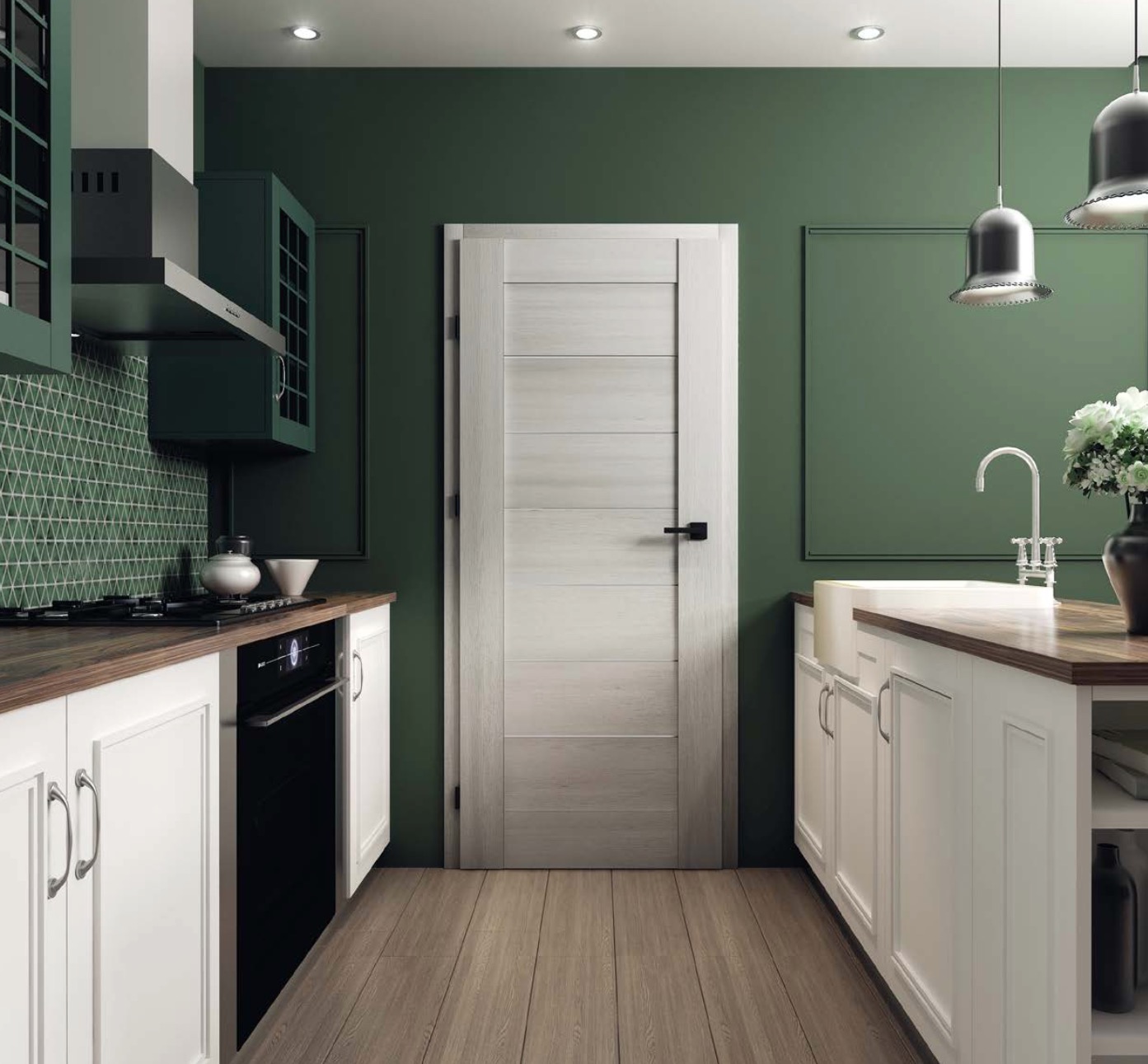 Usi din MDF de calitate superioara cu finisaj 3D, reproduce aspectul si structura de lemn, rezistente la abraziune, cu o greutate de aproximativ 40 kg.
